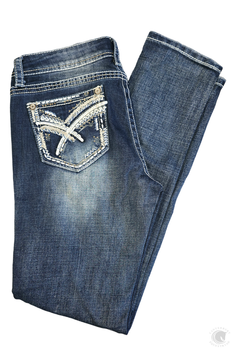 Made from soft, stretch-infused denim, this pair is perfect for everyday wear. Subtle back pocket stitching adds a clean finish, while front pocket embellishments, hand-sanding, and whiskering bring that effortlessly lived-in feel.