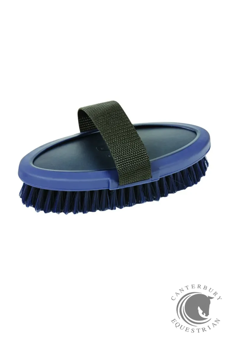 Designed with a soft leather-touch back and gentle bristles, this body brush is perfect for lifting dust and adding shine without irritating the coat.