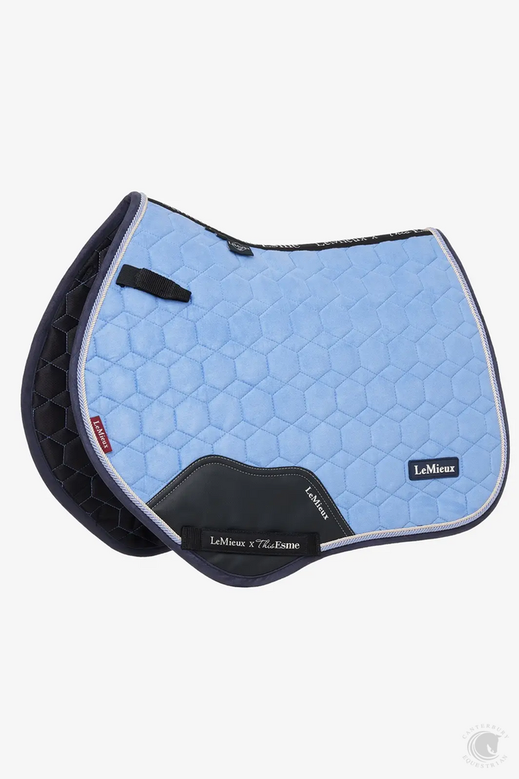 Well-loved equestrian YouTuber Esme Higgs has 'influenced' the design of this exquisite dressage saddle pad in her own unique way. She chose uplifting corn blue with contrast twisted braid trims, a bespoke quilting pattern, a square back corner, and a pretty rubberised logo badge. Subtle LeMieux x This Esme branding adorns the spine tape.