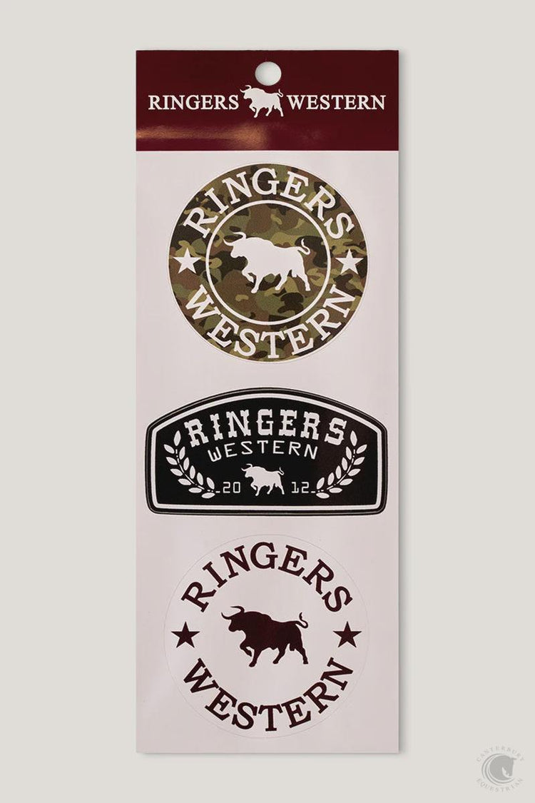 3 Pack of Ringers Western stickers. This pack features vinyl stickers showcasing three different logos.