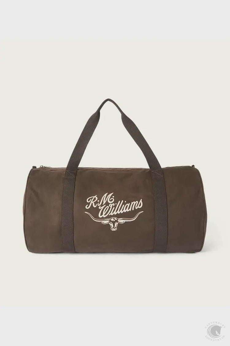 Hit the road with this rugged travel companion, cut from durable Halley Stevensons waxed cotton canvas and finished with cotton webbing handles, a removable cross body strap and an RM script Longhorn logo print.