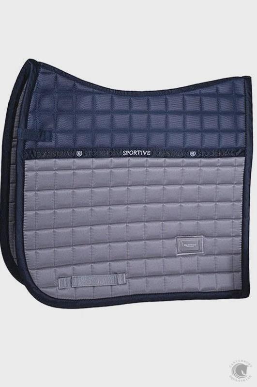 Sportive saddle pad in a gray color. Designed with navy blue decorative mesh and an Equestrian Stockholm badge in silver. Style with other pieces from the Sportive Blue Ash collection for a head-to-toe stylish look.
