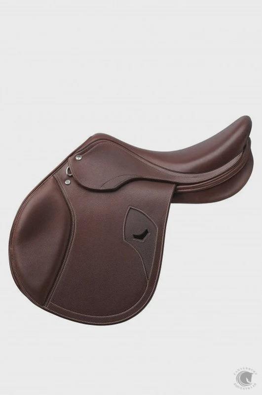 Deep seat jumping saddle made on a fiber tree suitable for the majority of show jumping horses. Thanks to the big or small front Velcro blocks, this jumping saddle gives a safe riding position to both professional and amateur riders. You can order the Velcro blocks on request. This model is available in seat 17 and 18 with basic or forward flap projection, in double leather. The available colours are tan or black.