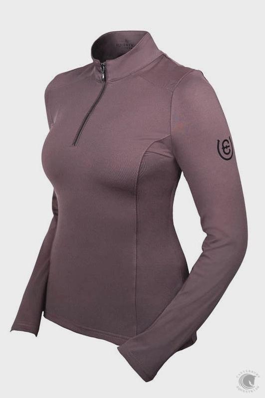 Colour:Brown with a touch of purple Details:Vertical Equestrian Stockholm logo on the back in black. Small black Equestrian Stockholm logo on the left arm. Material:Body: 75% Recycled polyester, 25% Spandex / Mesh Material: 86% Recycled polyester, 14% Spandex Washing: Wash at 40°. Wash in a laundry bag. Wash with similar colours. Do not use fabric softener or bleach. Always air-dry