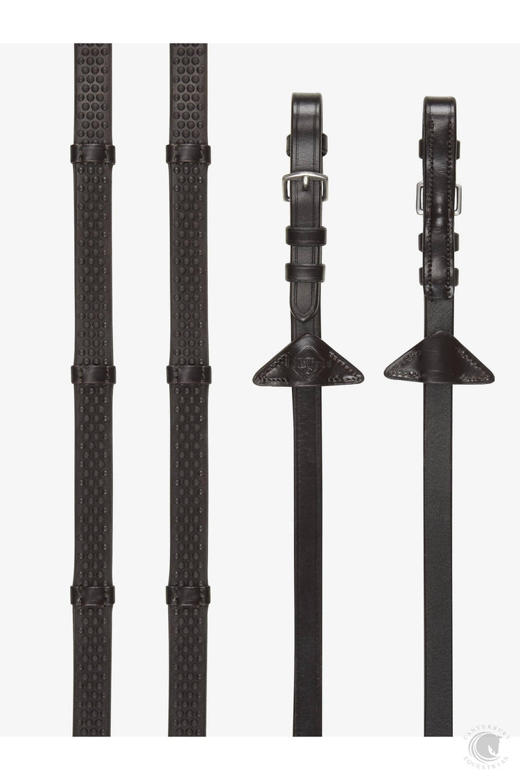 Simple and easy to use, these reins are a popular choice for lower-level riders or fast work. They're complemented by the branded LeMieux Leather martingale Stoppers.