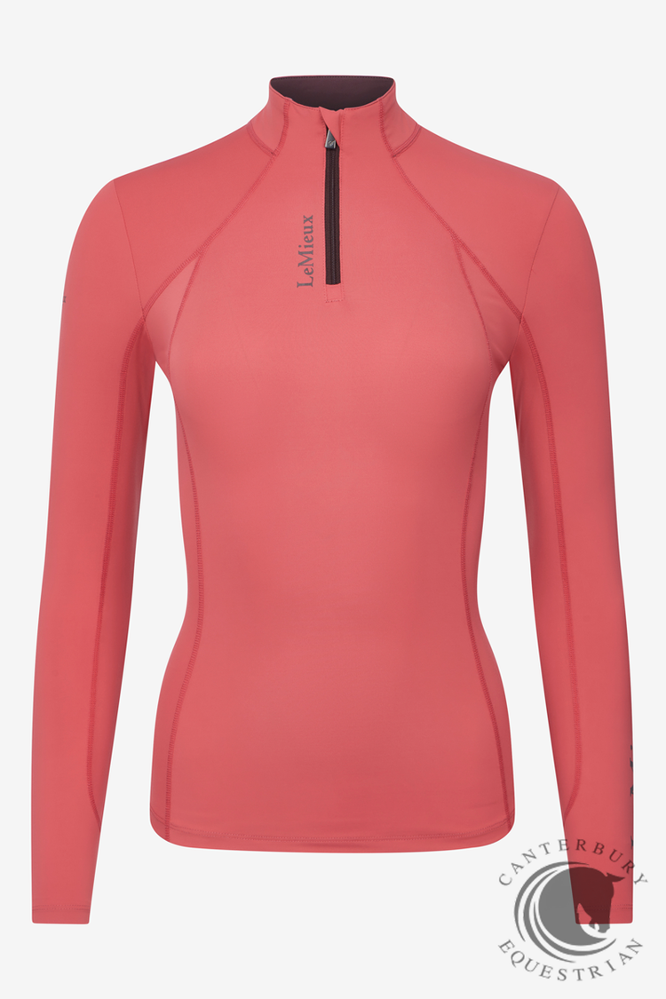 Do it all in this UV50+ quarter zip base layer. Its technical fabric regulates your body temperature, with vented underarms to keep you cool and dry. Contrast matte logo print is a subtle sign of the quality you expect from LeMieux.