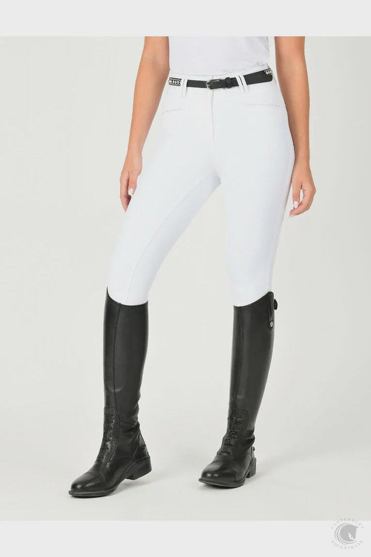 With Dublin’s Black Chelsea Competition Breeches, you can look and feel your best, no matter what the competition holds. Expertly crafted with a mid-rise waist, high-waisted back, and superior four-way stretch for unparalleled comfort and freedom of movement, these breeches are simply unbeatable. With a full seat gel print for greater stability in the saddle, and splash-proof technology, these superior breeches won’t let you down. What’s more, they come with Curve sizing for a tailored fit, making them a stable staple in any equestrian enthusiast’s wardrobe. Step into Dublin’s Black Chelsea Competition Breeches today and experience a superior ride.