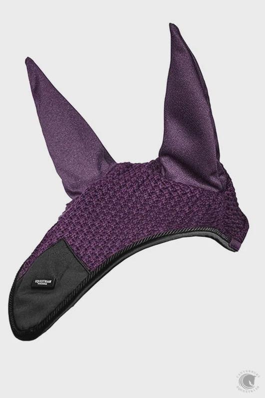 Luxurious crocheted ear bonnet in a stylish dark purple colour. Decorated with a black satin patch on the front, beautiful black piping and an Equestrian Stockholm badge in black. The ear netprovides both insect protection and noise reduction. It has elastic cloth on the ears for extra comfort. Matches perfectly with the saddle pad from the Black Raven collection.