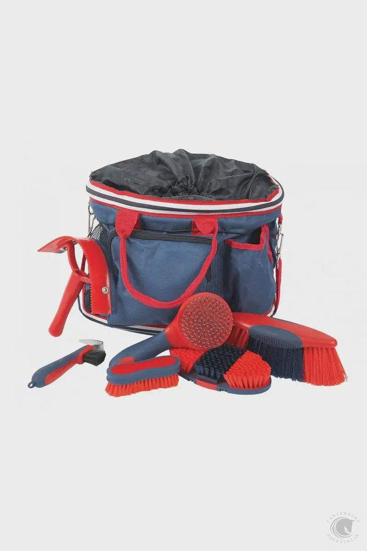 The Grooming Kit contains a body brush, dandy brush, sweat scraper, face brush, hoof pick and mane and tail brush.