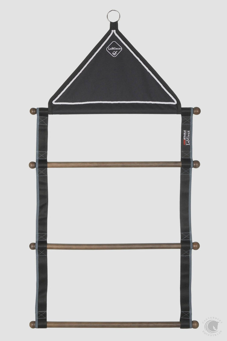 New rug hanging rack with quality wooden struts. Store your rugs, saddle pads and accessories easily on one stylish rack. Strong metal loop at the top for easy hanging.
