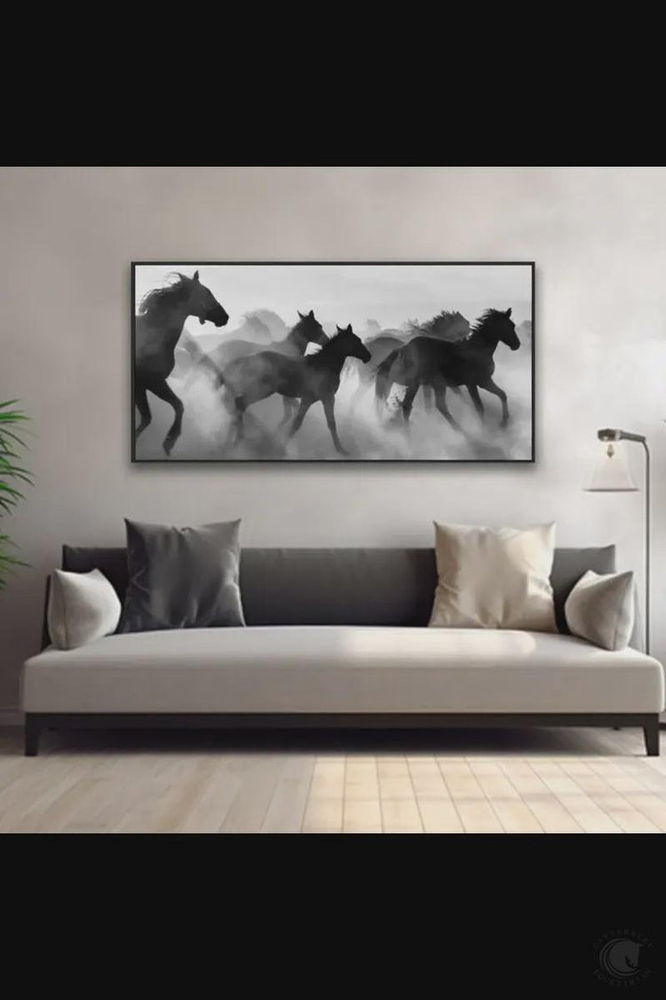 This monochrome print of wild horses is almost ethereal and magic. With sunlight beaning through the dust and movement this is an artistic shot for a stylish home.