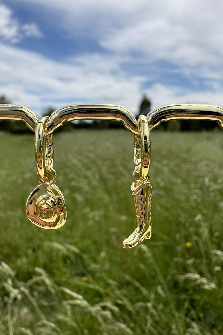 These earrings are thoughtfully designed with a huggie style for enhanced comfort and are meticulously crafted from 925 sterling silver and coated with a 1 micron layer of 14K gold for long-lasting colour. We specifically chose 14K for its increased durability and resistance to wear and tear compared to 18K. In fact, with proper care, the colour will last due to the 1 micron coating.