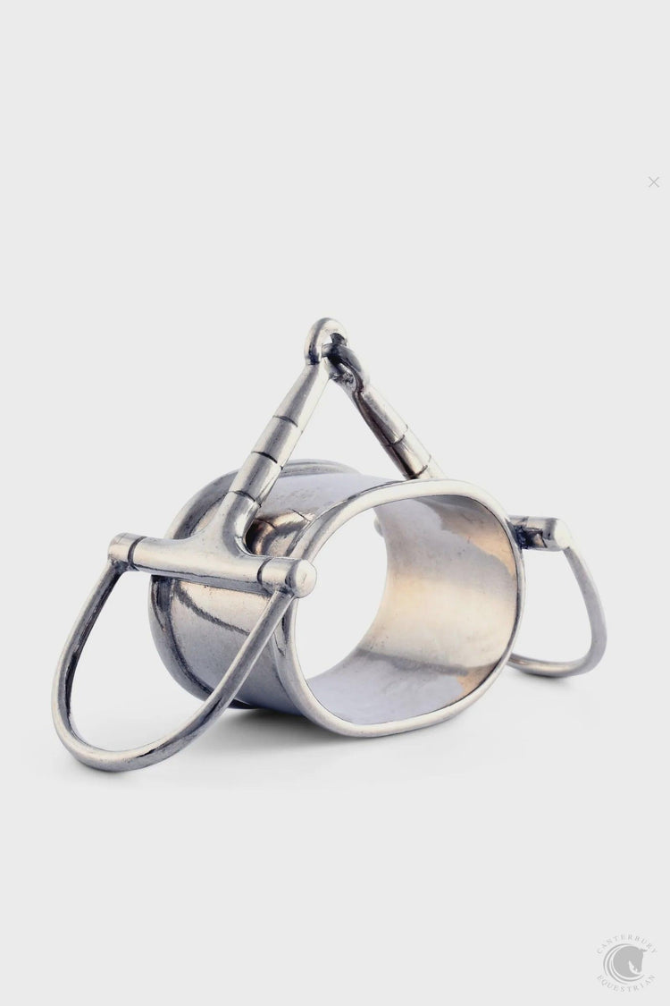 Reminisce about past riding experiences as you inspire conversation with these fabulous Bit Napkin Rings. Crafted in luxury-grade pewter, these innovative pieces feature a French link snaffle bit angling down and around a tubular opening for the napkins. This saddle-like design and the realistic bit offer an attractive, equestrian-themed accent to any setting.
