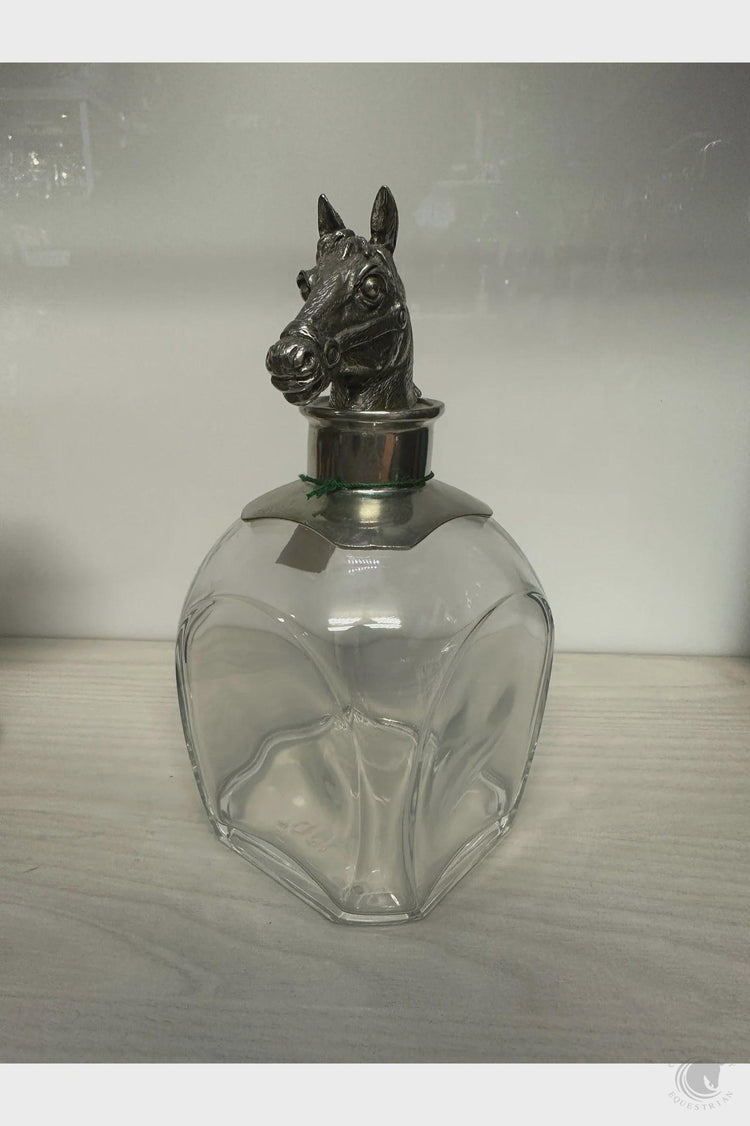 Our fabulous polished pewter and glass decanter with horse head stopper.