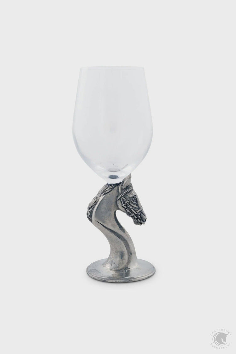 A noble and proud Thoroughbred head hand-crafted from solid, lead-free pewter is uplifting the hand-blown glass bowl, ready to be filled with a noble drop of wine. A very elegant and extravagant addition to any table and occasion for a new dimension of fine dinning and entertainment.