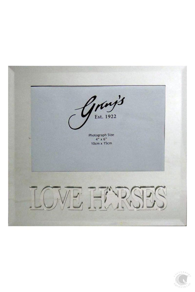 Mirrored glass photo frame 4" x 6" with "love horses" on the lower part