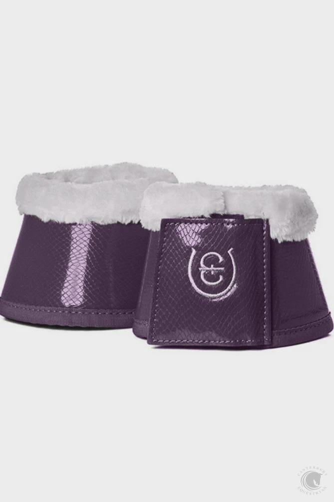 Upgrade your style with these high quality bell boots in shiny faux leather with croco imitation. Designed in a beautiful purple with cold beige teddy. Super soft navy teddy on the inside against the horse’s leg. The bell boot is about 6 mm thick with neoprene lining on the inside that effectively prevents injuries to the heel bulb. The bell boot is closed with a wide velcro closure decorated with a white Equestrian Stockholm’s logo. Style with the brushing boots from the same collection.