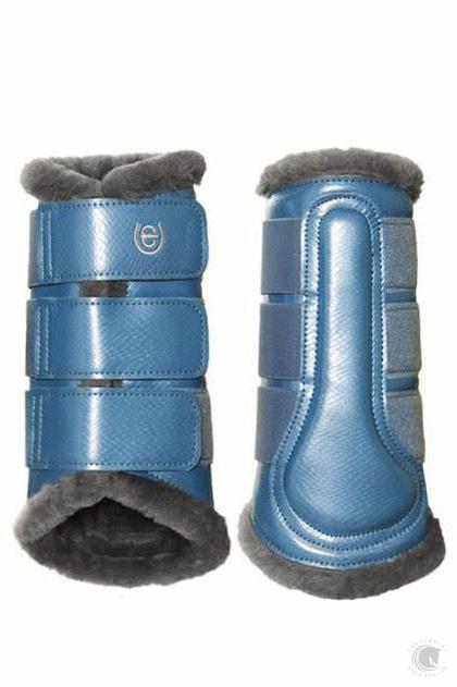 High quality brushing boots with all-round fit, designed in a Parisian Blue colour with soft teddy fur. Produced in shiny synthetic leather with croco imitation. Teddy on the inside against the horse’s leg. Three elastic Velcro closings with the stylish Equestrian Stockholm logo. Style it with other products from the same collection for a complete look. The boots comes in pairs of two.