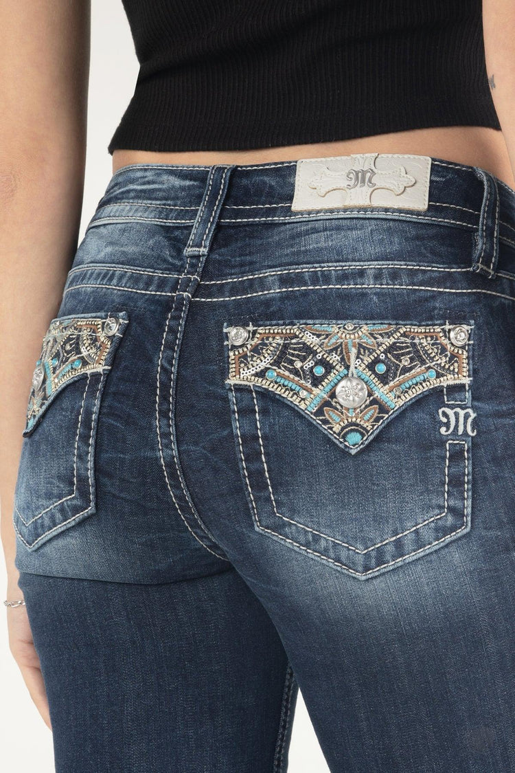 Miss Me Gold and Turquoise Floral Bootcut Jeans