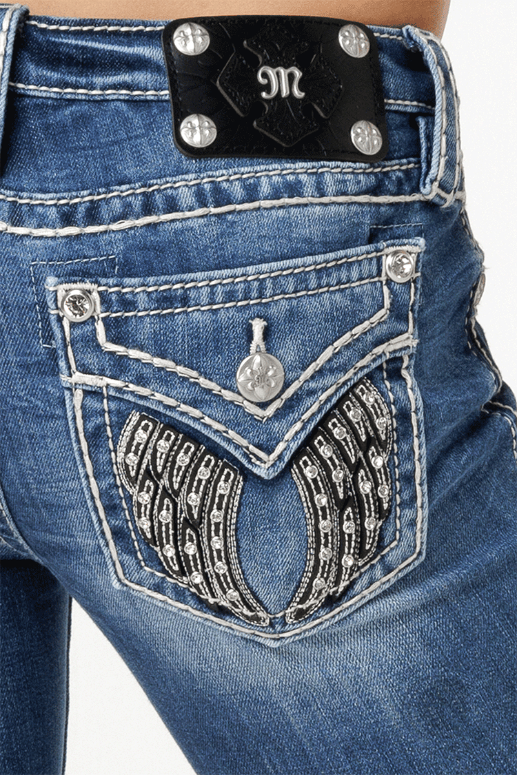 Miss Me Leather Shadow Wings Skinny Jeans