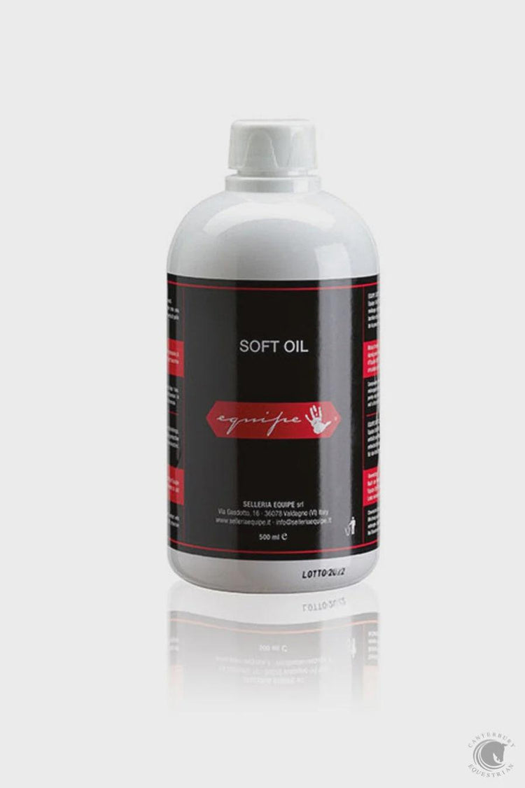 Equipe Soft Oil We recommend an application of Soft Oil before the initial use of your Equipe Product and for the general maintenance of leather saddles and accessories. It's mixture of natural ingredients creates a protective barrier against sweat and dampness and maintains the suppleness of the leather. Not suitable for suede or synthetic leathers. Recommended for all Equipe leather products as this is the correct PH level.