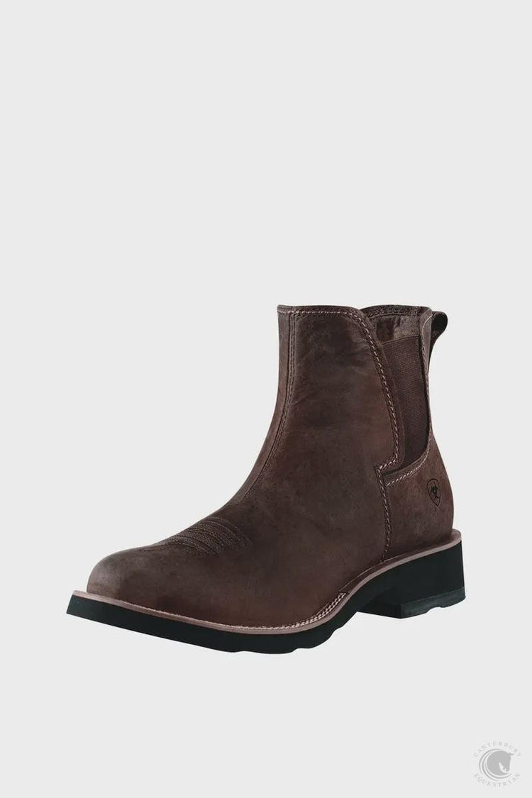 The Ambush is a boot with rugged Western features for casual living and every day wear. Handcrafted from full-grain leather, with side-stretch elastic panels for easy pull-on and a snug fit. The Ambush sports a Round toe and a Pro-Crepe outsole that is lightweight and flexible. Ariats 4LR System provides comfort and stability.