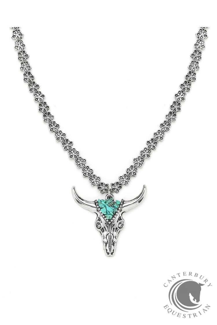 • Crowing the pendant are howlite turquoise chips adding a pop of color