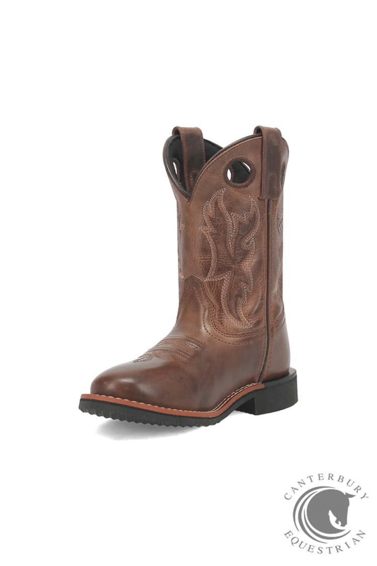 Lil' Dawson by Dan Post is the miniature version of the Dawson stockman boot from Laredo. This 8- inch kids boot features cushion comfort insole, broad round toe, rubber outsole and stockman heel. The Lil Dawson is prepared for any adventure your young one may embark on.