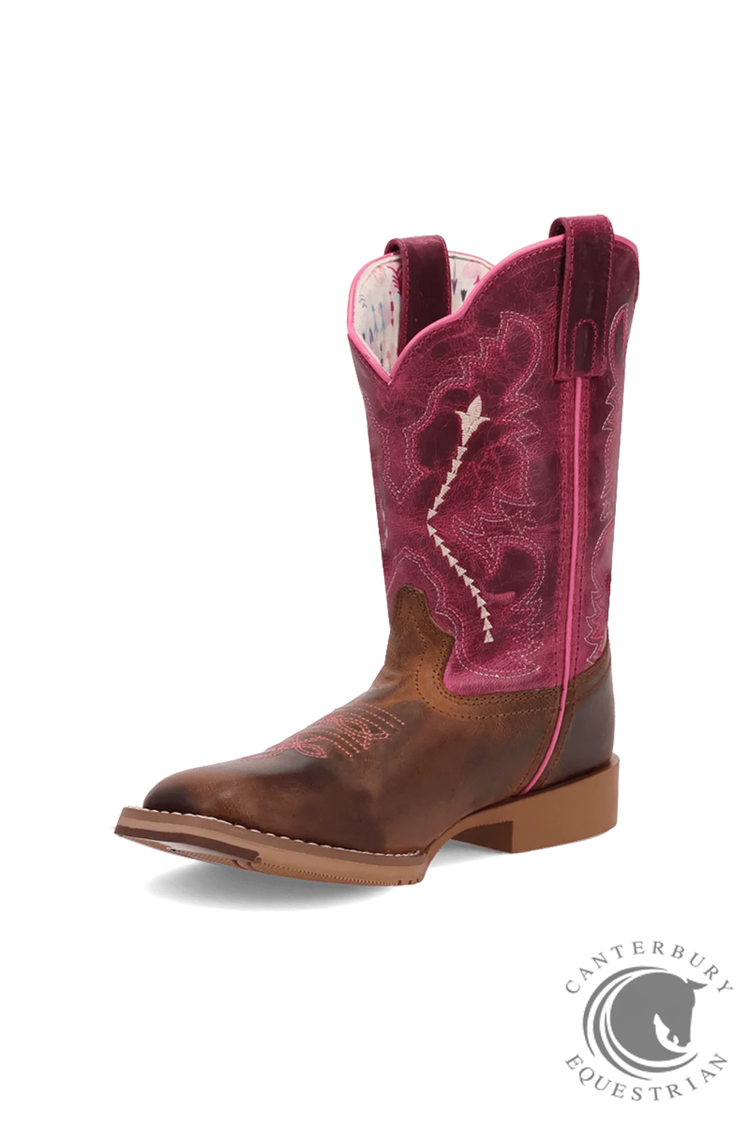 As sweet as a honeysuckle, the Salina Cowgirl boot is made for adventure! With an 8-inch shaft, broad square toe, and stockman heel, this boot combines style and durability. The cushion comfort insole and rubber outsole keep little feet comfortable and steady all day long, perfect for the toughest cowgirls!