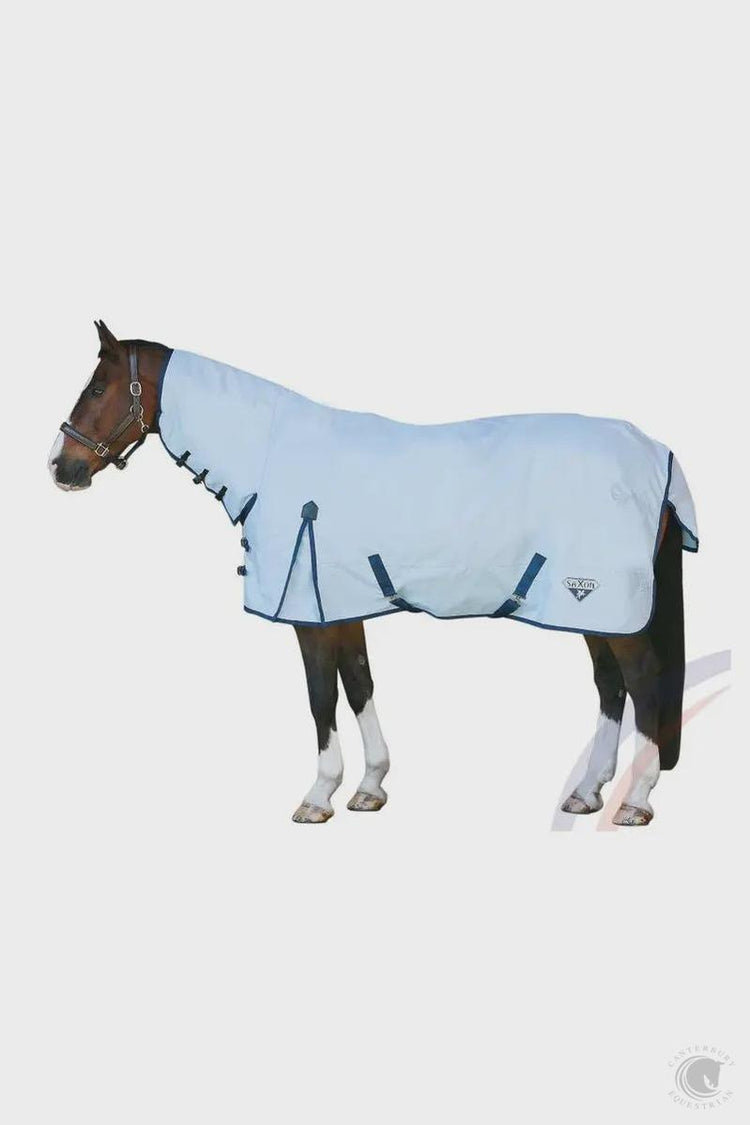 Tough 600 Denier Waterproof and Breathable outer. Features breathable and cool polycotton lining in the upper section for horse comfort and the lower section has a strong 210T lining.  No polyfill for those milder days and has a standard tail flap and traditional shoulder gussets.  Features low cross surcingles, twin chest straps and adjustable web leg straps.