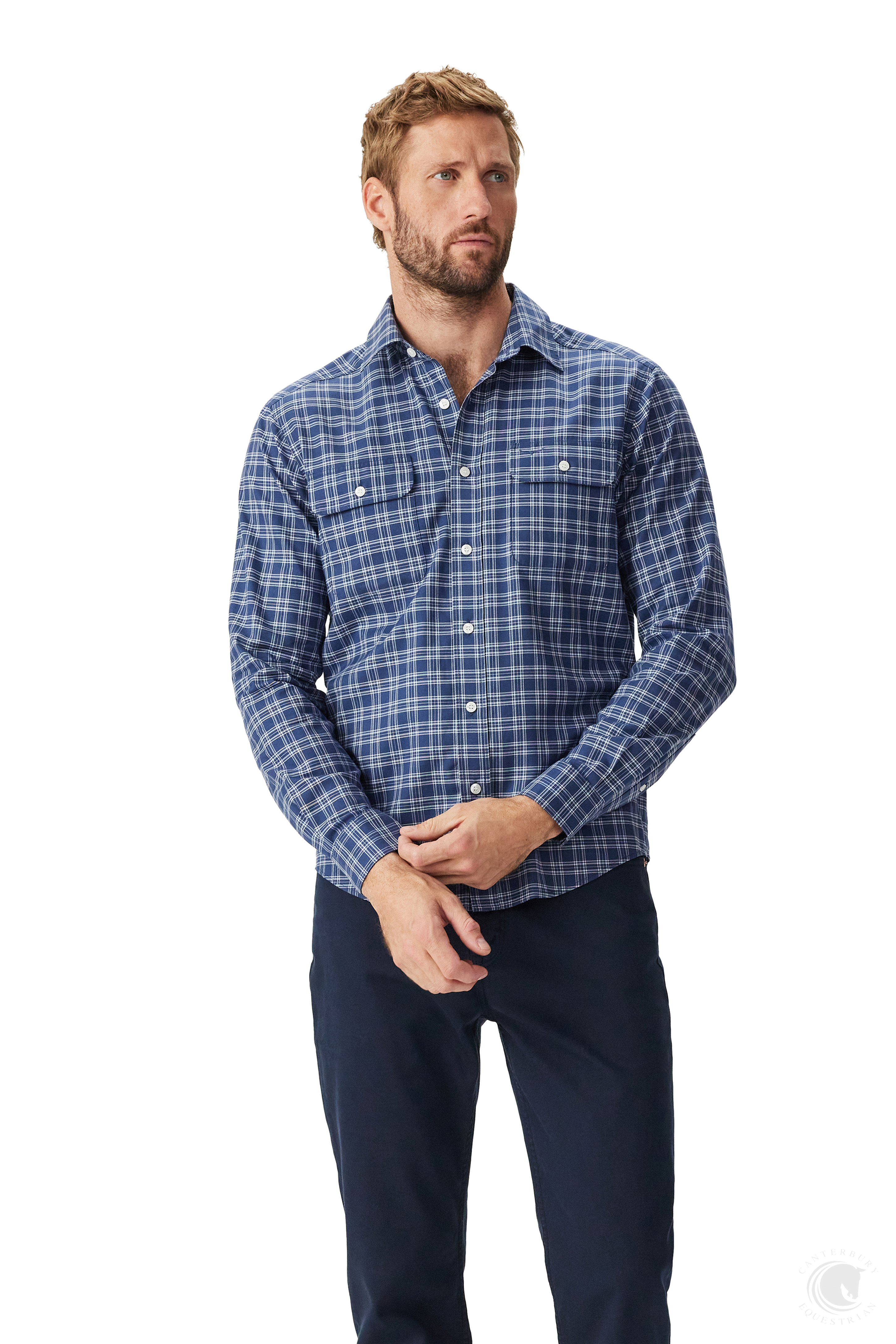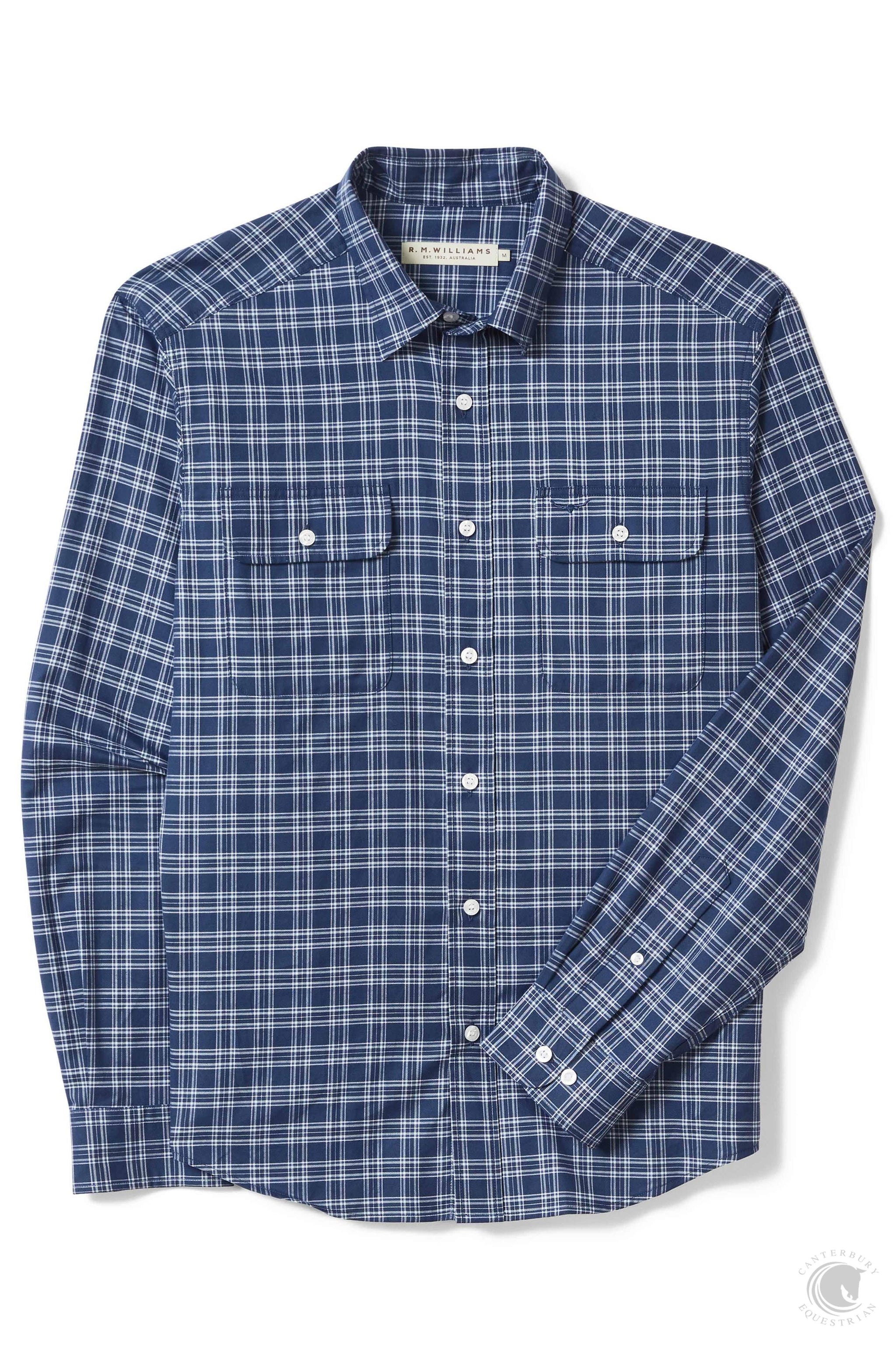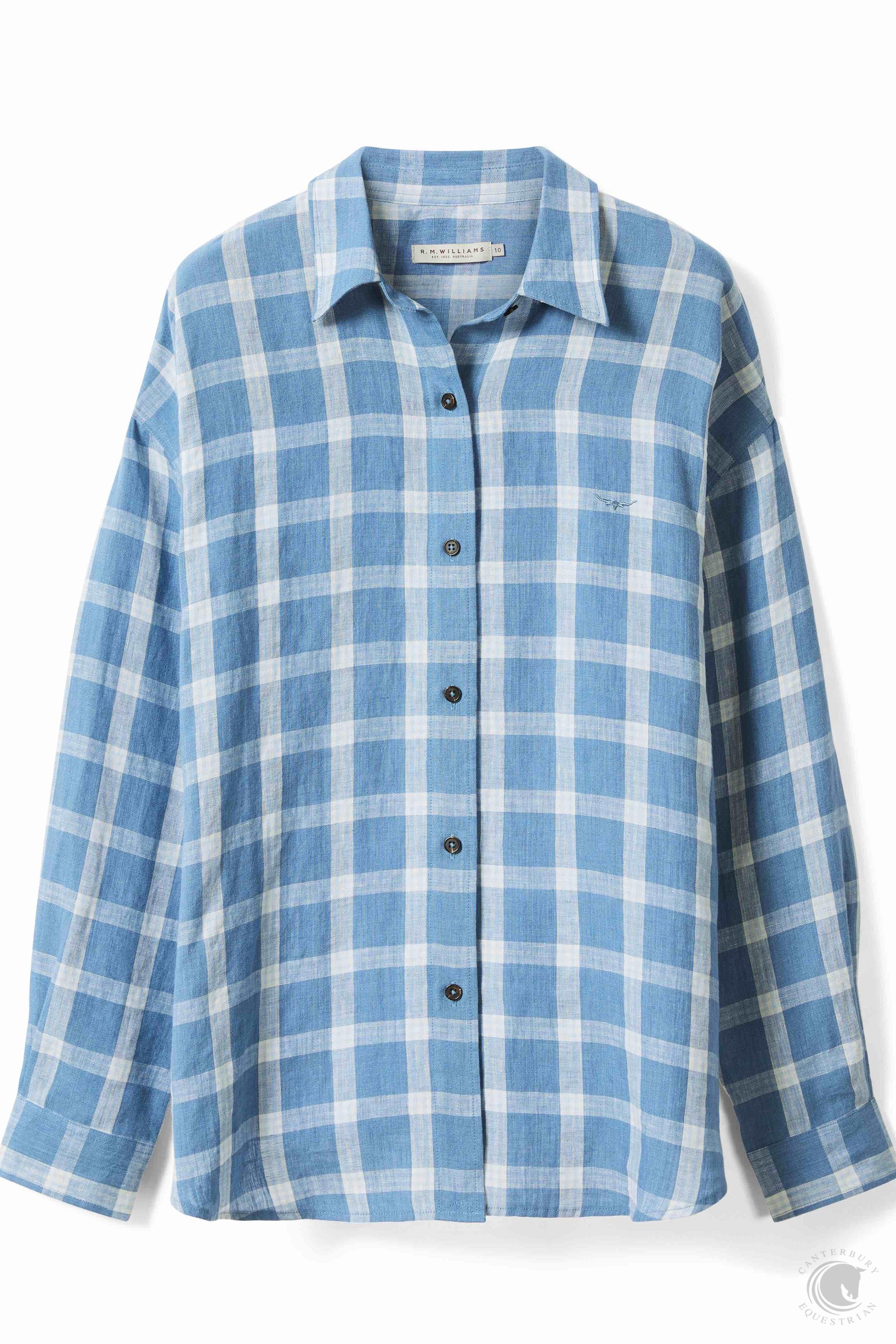 R.M. Williams Frome Relaxed Cotton Shirt White Blue