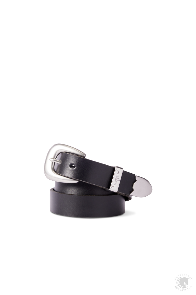 A narrow, feminine style staple with western-inspired details. It's cut from durable double butt leather and finished with elegant brushed nickel hardware.