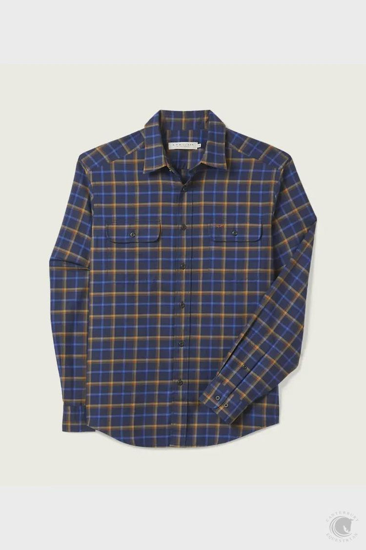 R.M. Williams Regular Twill Check Shirt Navy/Brown