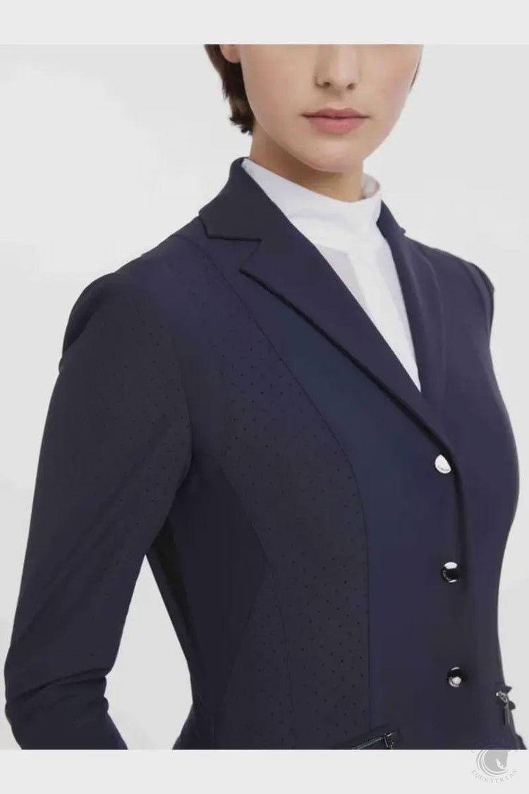 Competing in hot climates can be challenging, but this specialist technical performance jacket makes beating the heat a breeze.It's a lightweight, breathable show jacket designed to take care of the temperature so you can focus on performing your best. Perforated panels and ultra-fine mesh under the arms and armpits ensure ventilation and airflow, no matter how hard you work.  With elegant yet sporty contour seam lines and exposed zip pockets, it uses minimal fabric to maximum effect, to fit and flatter your figure as you ride.