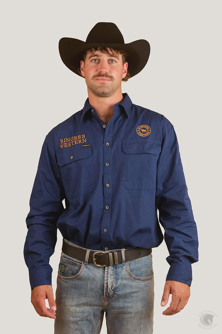 Ringers Western Mens Hawkeye Full Button Work Shirt Navy/Orange