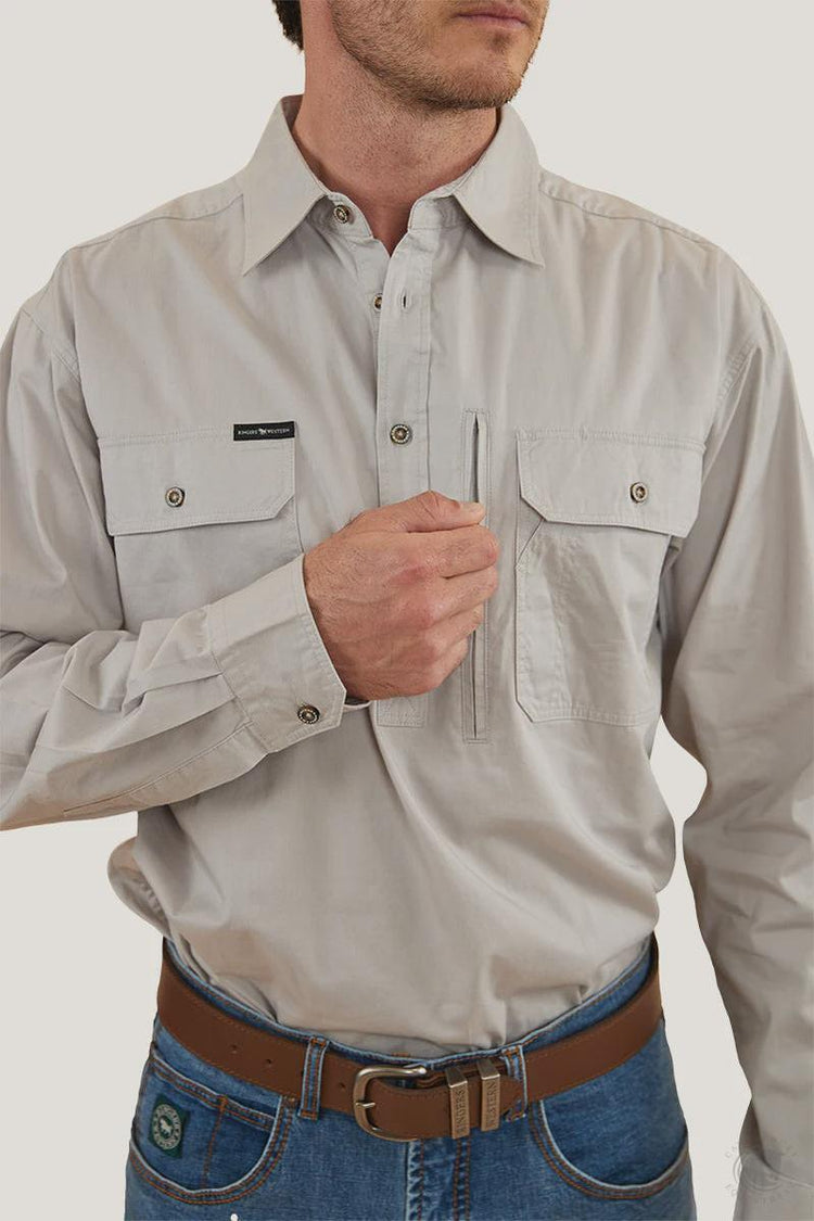 Ringers Western Tempest Mens Half Button Work Shirt Beige