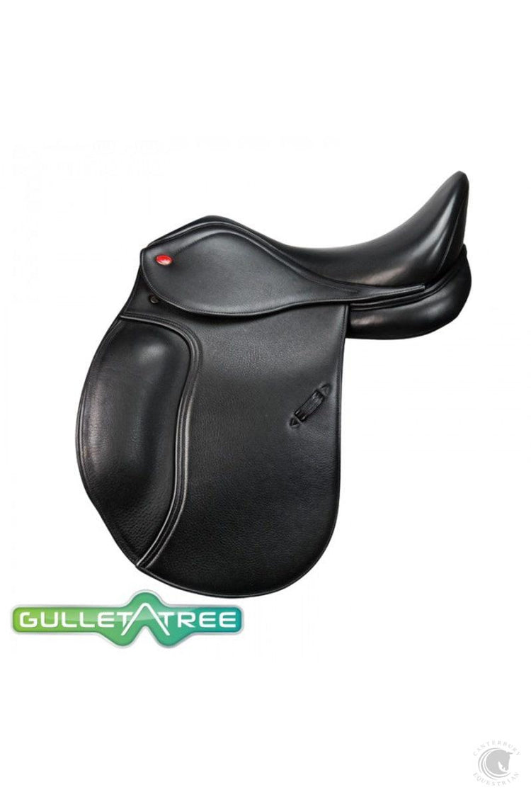Designed to meet strict Dressage regulations, the Highgate Dressage Saddle features a tonal stitch and tonal pipe throughout with classically styled panels.  There is a large moulded knee roll and deep seat to encourage proper leg position and posture, and the flaps have been elongated to get the riders legs.  The whole upper of this saddle is made from a genuine leather, whilst the under panels and sweat flaps are made from a durable synthetic leather which needs minimum care – meaning you can spend more time in the saddle.