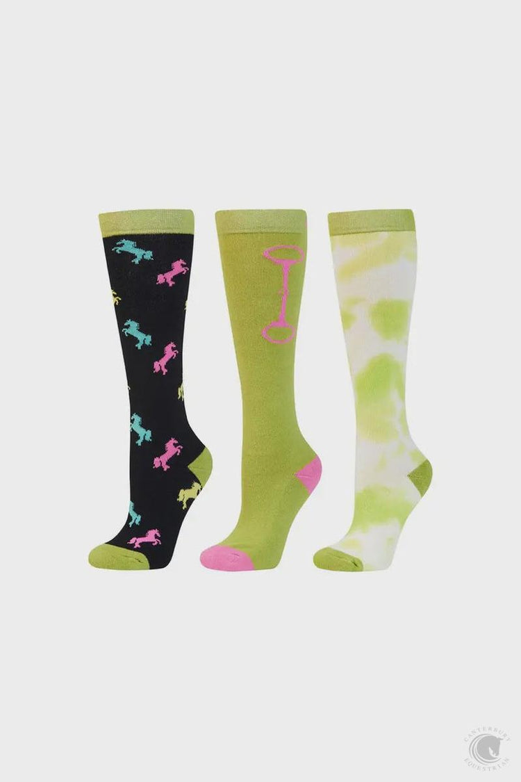 DUBLIN 3 PACK SOCKS LIME HORSES CHILDS