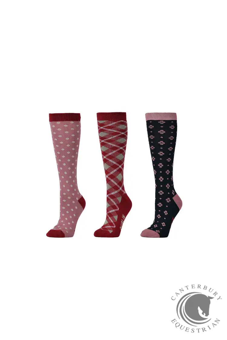 Add some fun and colour to your riding outfit with the Dublin 3 Pack Socks, these packs of high socks add colour and comfort to any outfit, made from a naturally breathable stretch cotton, your feet are sure to stay comfortable all day long. These socks come in packs of 3 pairs of socks in a range of colours and assorted designs. 3 pack high riding boot socks Naturally breathable stretch cotton Comes in assorted designs to complete any occasion 70% Cotton / 25% Polyester / 5% Elastane