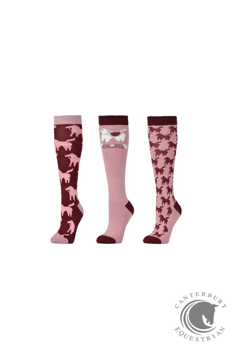 Dublin 3 Pack Socks Cabernet Nordic Ponies