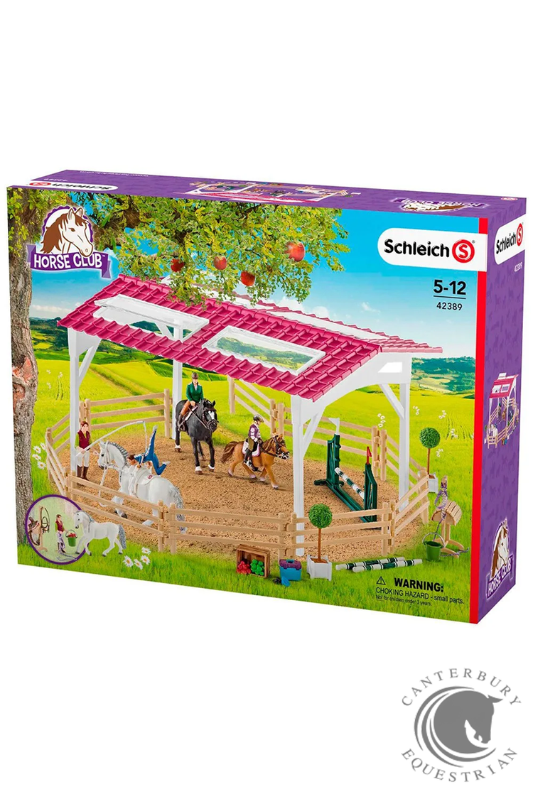 The friends regularly meet at the riding school to train with their riding teacher. Dressage, showjumping, vaulting: the three friends really enjoy the highly varied training. After the riding lessons, they unsaddle the horses, reward them with apples and clean their coats using a horse brush and curry comb. All the Schleich figures are lovingly hand-painted with detailed modelling and allow kids to learn while they play.