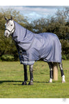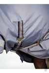 The waterproof yet breathable 600 Denier rip stop outer is cut with a seamless spine to eliminate leaks. It boasts a 3000mm waterproof and 3000 mvp breathability rating, perfect for warmer rainy days. An antibacterial, anti-static shoulder lining helps balance the rug while enhancing shine, perfect for when your horse's coat is changing.