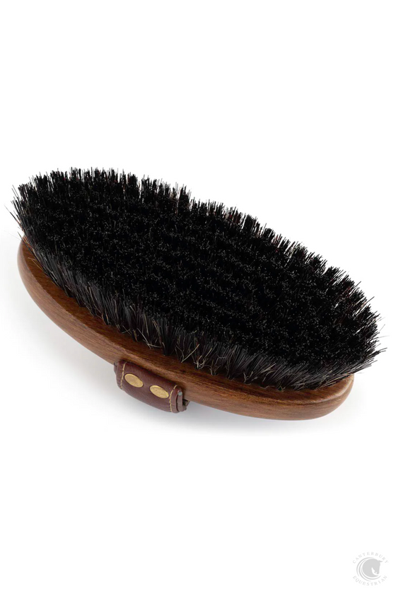 HAIRY PONY DANDY BRUSH is handmade using high quality beechwood & stiff synthetic bristles - perfect for brushing legs & removing dried mud. The padded leather handle adds softness & our signature bespoke gold details give a luxurious finish.