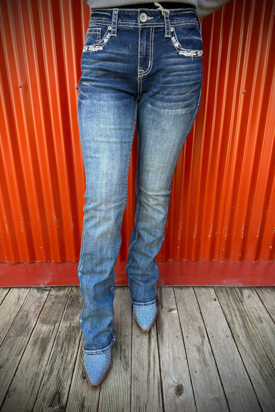 The denim fabric features a softer and higher stretch for exceptional comfort all while maintaining a denim look. The mid-rise creates a form-flattering fit for every curve. Natural hand-sanding, and whiskering. They look like they've been yours forever.