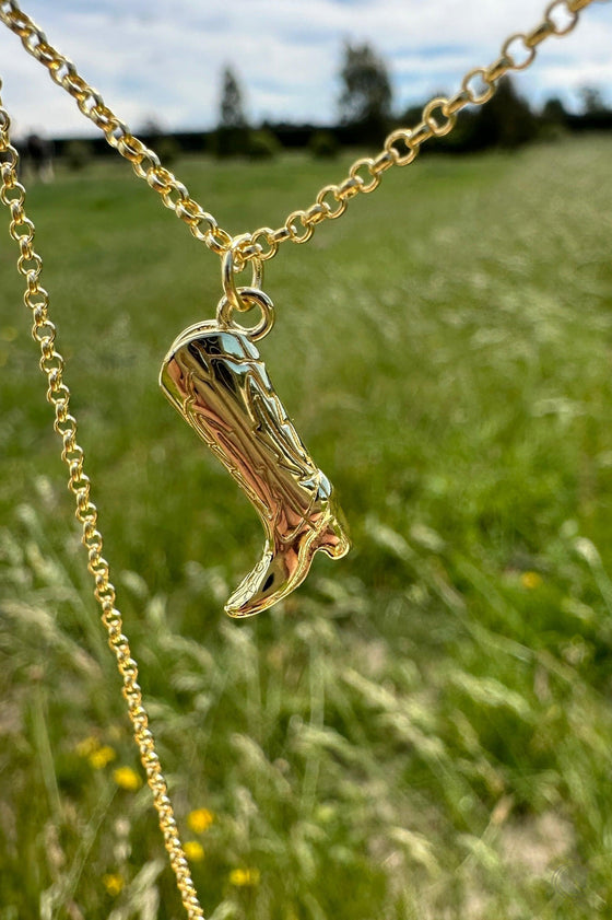 This cute cowgirl boot necklace has been crafted from 925 sterling silver and coated with a 1 micron layer of 14K gold. We specifically chose 14K for its increased durability and resistance to wear and tear compared to 18K. With proper care, you can enjoy your beautiful boot pendent for a prolonged period.