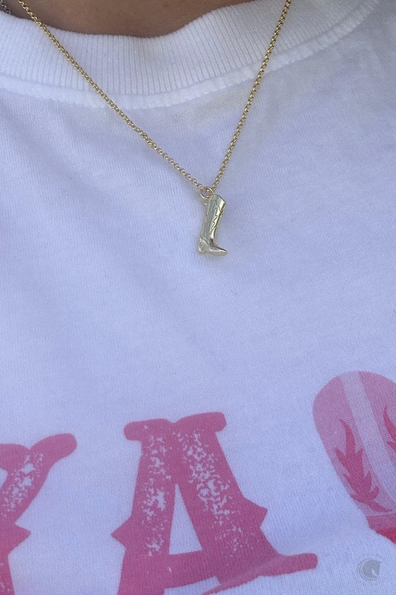 Cover Me Up Western Cowboy Boot Necklace - Sterling Silver 14K Gold Plated