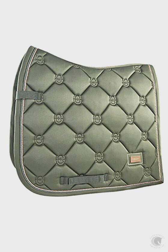 Stylish saddle pad in a green color, with rose gold details. Decorated with the Equestrian Stockholm badge in rose gold. Style with other pieces from the same collection for a head-to-toe stylish look.