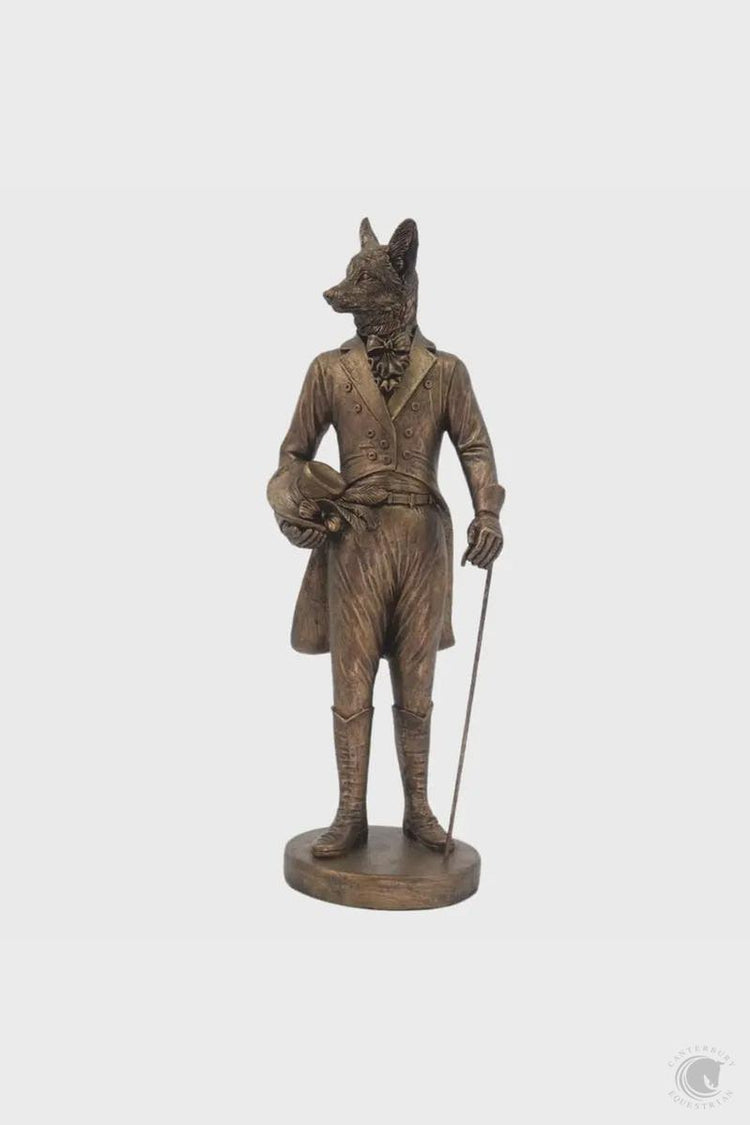 Fox in tails and boots holding hat, 41cm height bronze