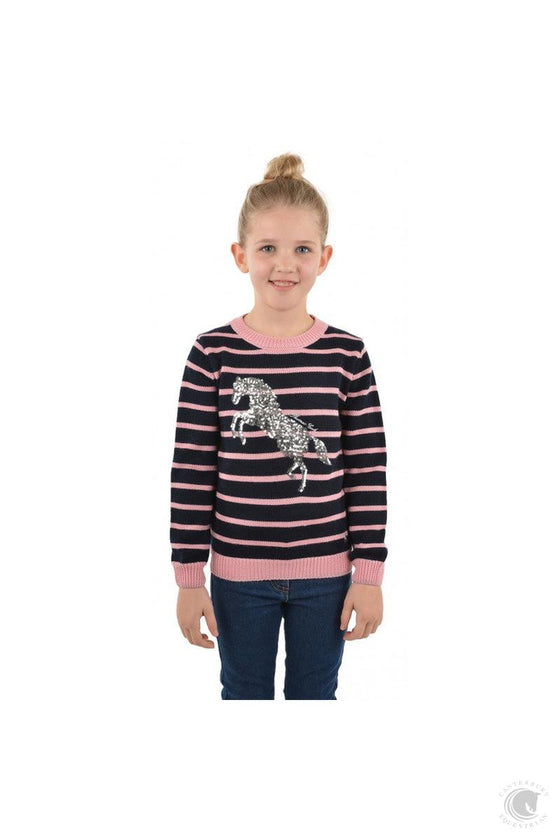Soft wool blend knit, large front feature sequins and embroidery, silver metallic tipped rib hem and sleeve cuffs, rib neckline, Thomas Cook embroidery on back neck and Horseman embroidery on side hem. 50% Merino and 50% Acrylic.