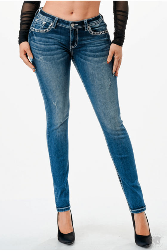 Grace In L.A Lilly Embellished Mid Rise Skinny Jeans